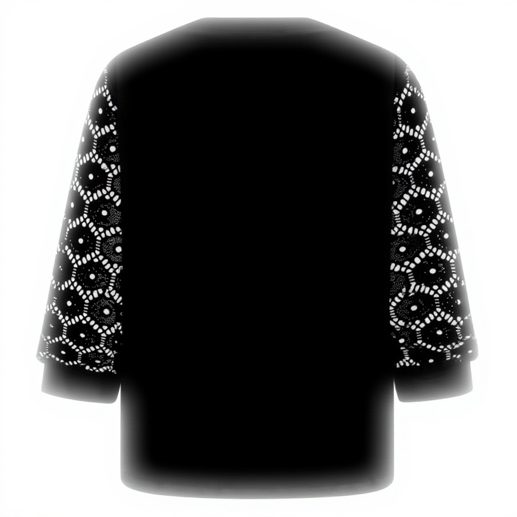 Diese Bluse ist in den Größen M und XL erhältlich, beide in der Farbe Schwarz. Das Material ist pflegeleicht und für Maschinenwäsche mit kaltem Wasser geeignet. Ein Blick auf die Größentabelle vor dem Kauf wird empfohlen, um die perfekte Passform zu gewährleisten.
