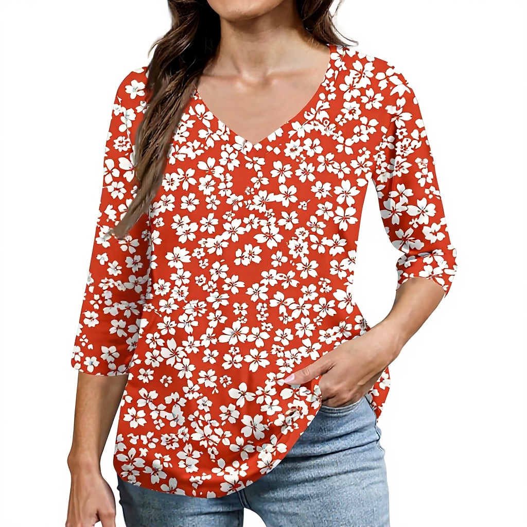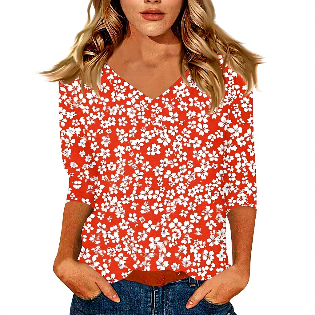 TOFOTL Damenbluse mit 3/4-Ärmeln und V-Ausschnitt