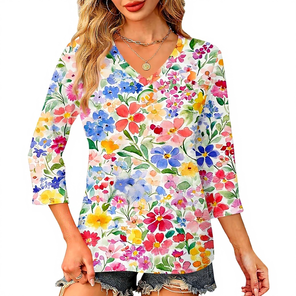 Das TOFOTL Shirt für Damen zeichnet sich durch seinen eleganten V-Ausschnitt und praktische 3/4-Ärmel aus. Hergestellt aus leichtem, atmungsaktivem Stoff, sorgt es für hohen Tragekomfort in verschiedenen Jahreszeiten. Die vielseitige Tunika-Form verleiht eine schmeichelhafte Silhouette und eignet sich ideal für modische Kombinationen.